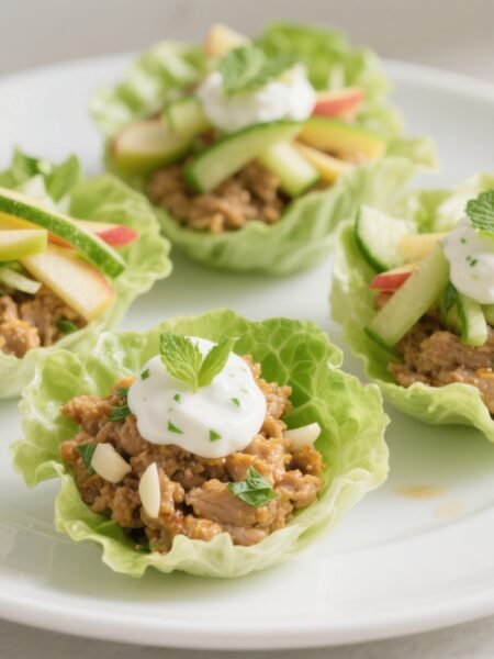 Garlic-Ginger Turkey Lettuce Cups with Cucumber-Apple Slaw