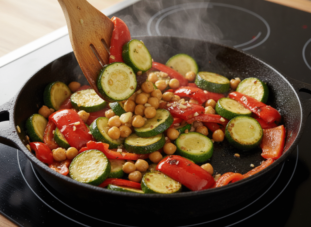 Sautรฉ the Vegetables & Chickpeas: