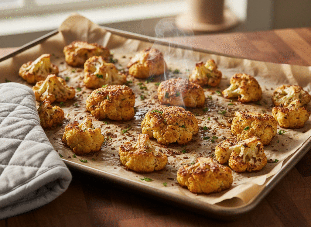 4️⃣ Roast: Spread cauliflower in a single layer on the prepared baking sheet. Roast for 20-25 minutes, flipping halfway through, until golden brown and tender with crispy edges.